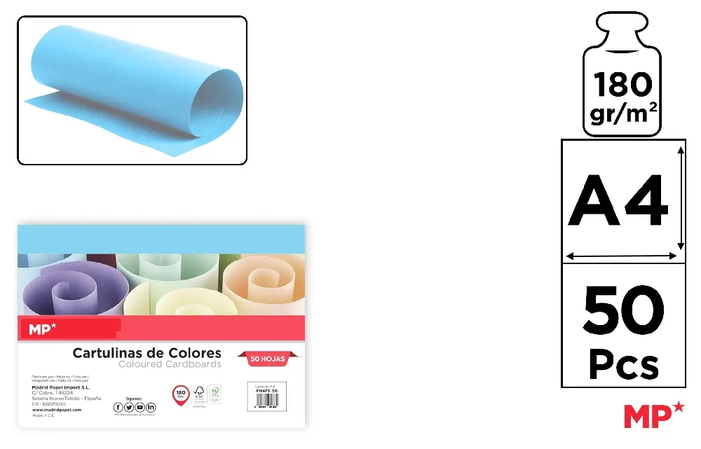 COLOURED CARDBOARD CARD A4 180 g/m² 50 u