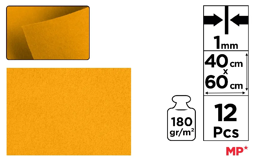 COLOURED FELT 40 x 60 cm 180 g/m² 12 u.