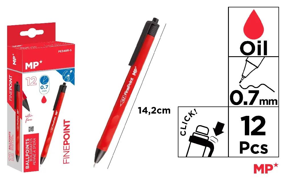 OIL INK BALLOT 0.7 mm RED.