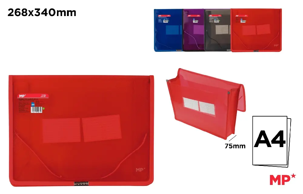 WIDE DOCUMENT FOLDER WITH ELASTIC BANDS