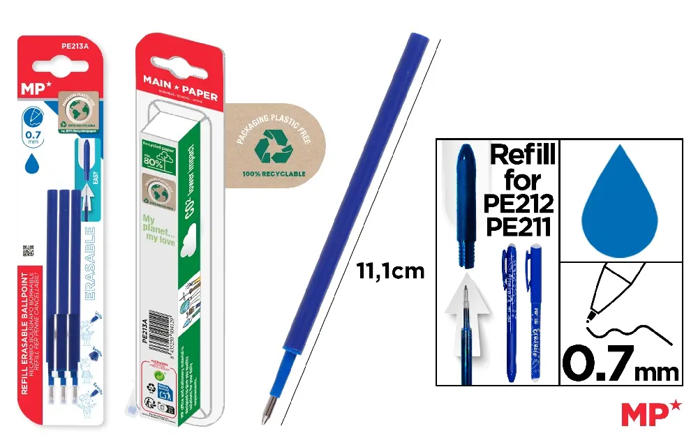 BLUE EASY ERASABLE PEN REFILL 3 pcs.