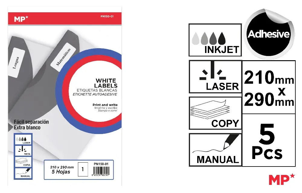 WHITE ADHESIVE LABELS.